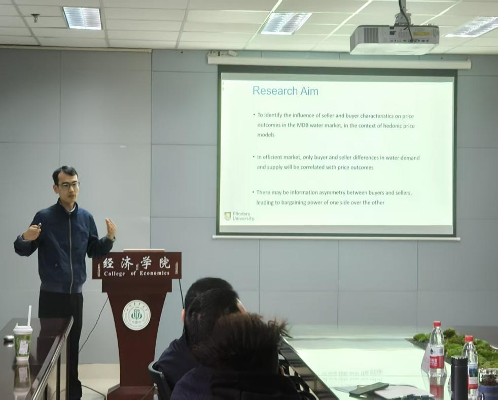 11月10日下午,由经济学院、德国研究中心与西部乡村振兴研究中心联合主办的“经济大讲堂”举行。澳大利亚弗林德斯大学应用经济学家Alec Zuo教授应邀作主题报告,分享了“农业水资源管理的经济手段:来自澳大利亚和中国的经验与教训”。