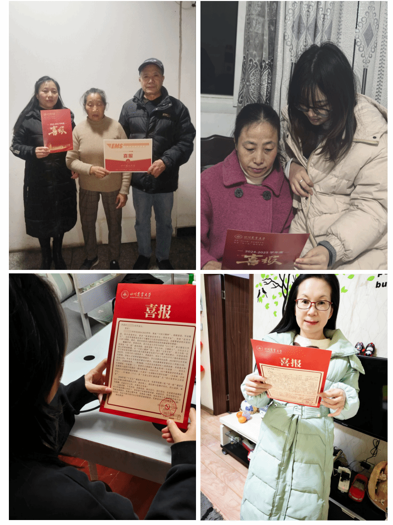 学校自2021年启动喜报邮寄活动,已连续四年累计为12700余人次学生家庭寄送喜报。收到喜报,家长们纷纷表示,这份特殊的“新春礼物”让他们真切感受到学校对学子的悉心培养,也更清晰了解到孩子在校园的成长与进步。获奖学子则在喜悦之余更添奋进动力,风景园林学院2024级园林专业向一婷坦言:“深刻感受到了学校的用心,未来我会带着这份认可,在学习的道路上继续深耕,不辜负学校与家人的期许。”