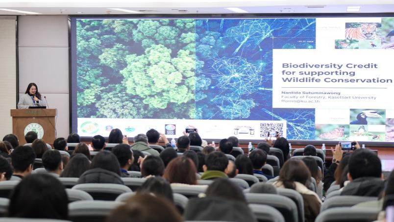 主旨报告环节,中泰学者围绕绿色发展关键领域分享最新研究成果。四川省林业科学研究院刘雄博士以系统阐释竹资源多维价值与关键培育技术,为“以竹代塑”提供实践路径。泰国农业大学南蒂达・素塔玛翁博士(Dr.Nantida Sutummawong)分享犀鸟重引入案例实证的生物多样性信用工具市场化经验,基塔纳帕特・巴拉梅瑟姆松先生(Mr.Kittanapat Baramesermsong)围绕循环经济与环境治理,提出“减量化-再利用-资源化”法律优化方案。我校潘翔副教授以《大熊猫国家公园全民共享与自然教育路径探索》为题创新提出“IP+手绘+在地场景”自然教育模式,吕兵洋副教授汇报了竹林生态康养价值量化研究的新进展。