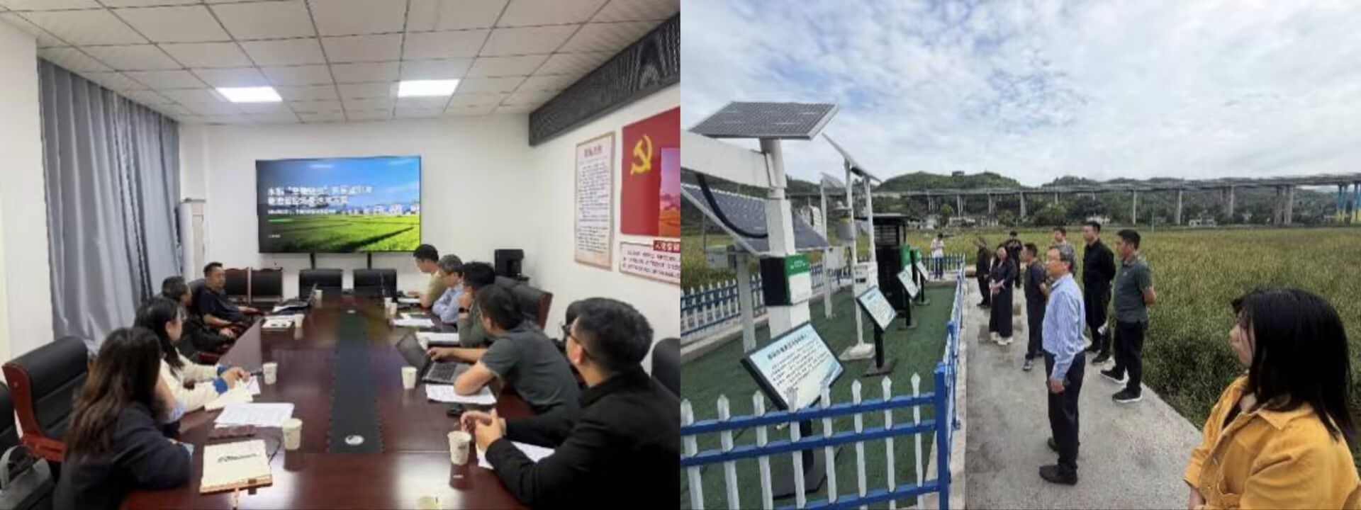 在宜宾市高县,团队通过专题座谈会与县农业农村局相关负责人深入交流,详细了解全县农作物生产现状、智慧农业软硬件条件、面临的瓶颈问题及未来发展规划。杨峰建议,在智慧农业技术应用中应立足稻油/稻麦一体化生产模式,打通传感与传感之间的数据孤岛,形成“播种、管、收、销”全链条闭环,构建少人化智慧农场典范,助力高县农业新质生产力发展。在高县庆岭粮油现代农业园区,团队现场查看了智慧农业建设进展及存在问题,提出充分利用现有感知监测设备和智能农机装备,打通感知、传输、决策、执行各环节,充分发挥低空多(高)光谱自动巡检预测、地面四情智能监测与生长模型深度融合的“空地结合、三位一体”核心技术架构,让数据跑起来、机器动起来、大户用起来。